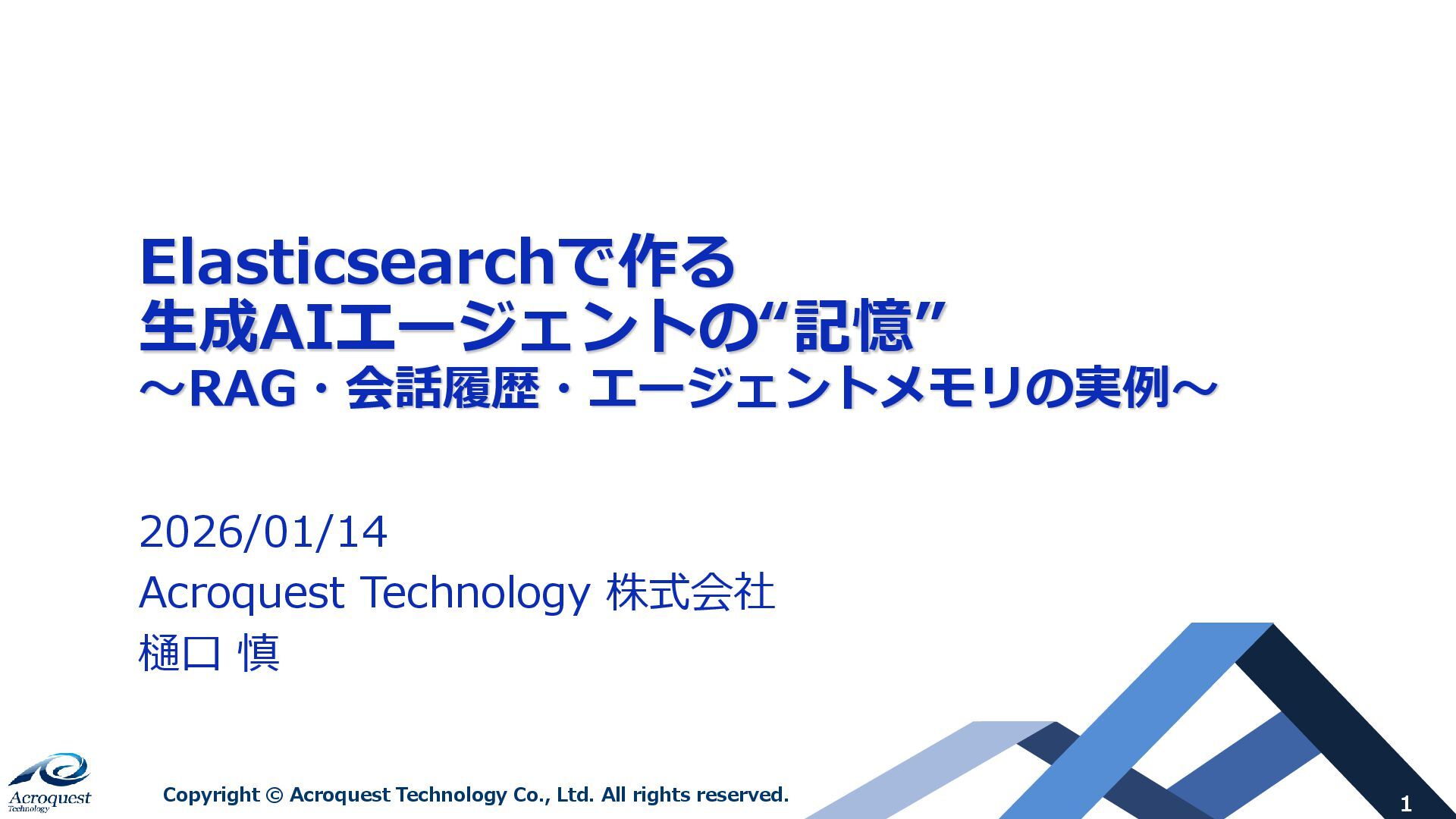 2026年1月14日開催のElastic コミュニティ・リコネクト発表資料です