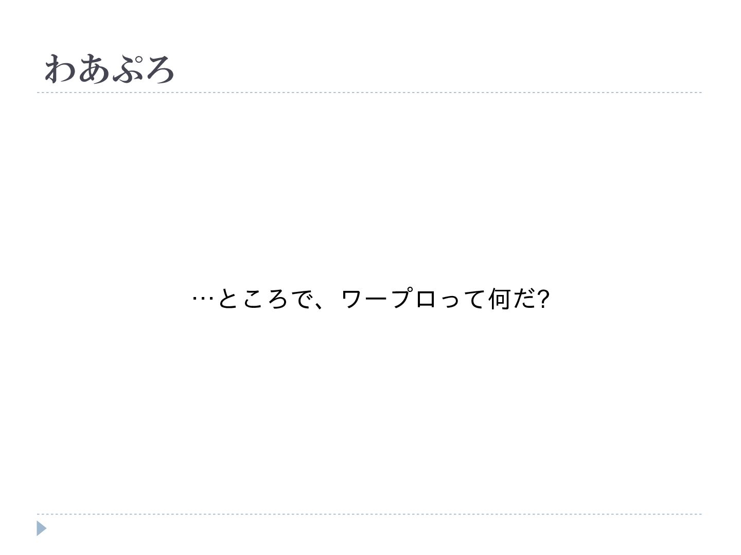 ワープロって何? ワードプロセッサ って何? • 文章を作成するためだけに存在するコンピュータ • 現代のMS WordとかLibre Officeのソフトウェア専用PCみたい な