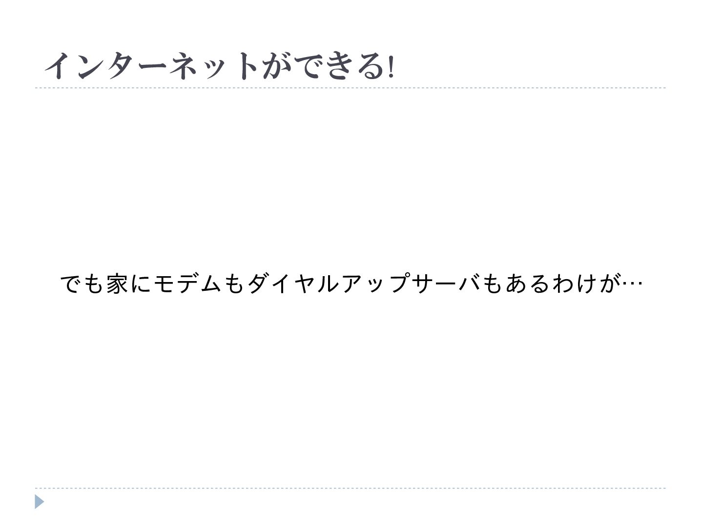 インターネットができる! でも家にモデムもダイヤルアップサーバもあるわけが…