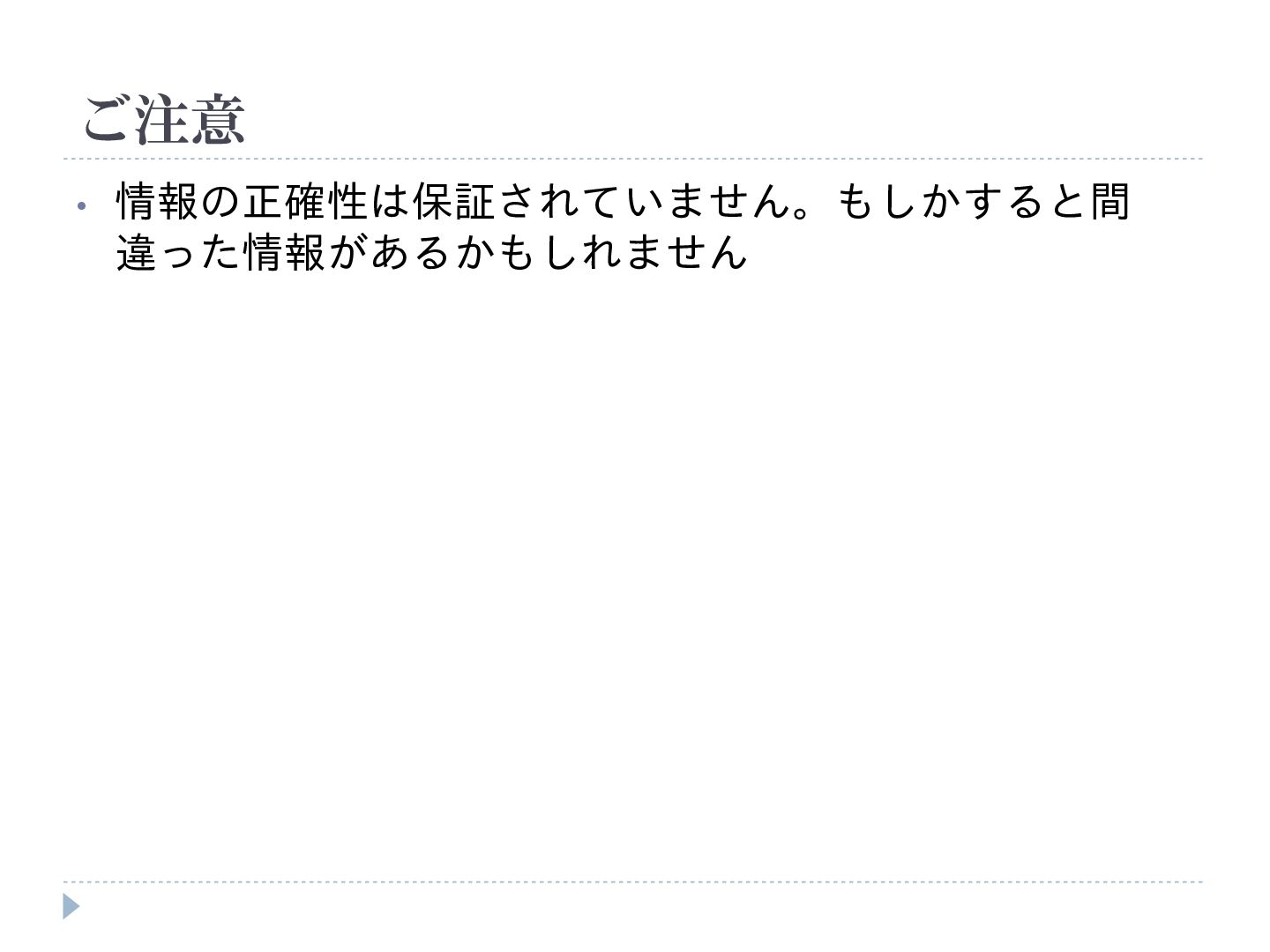 ご注意 • 情報の正確性は保証されていません。もしかすると間 違った情報があるかもしれません