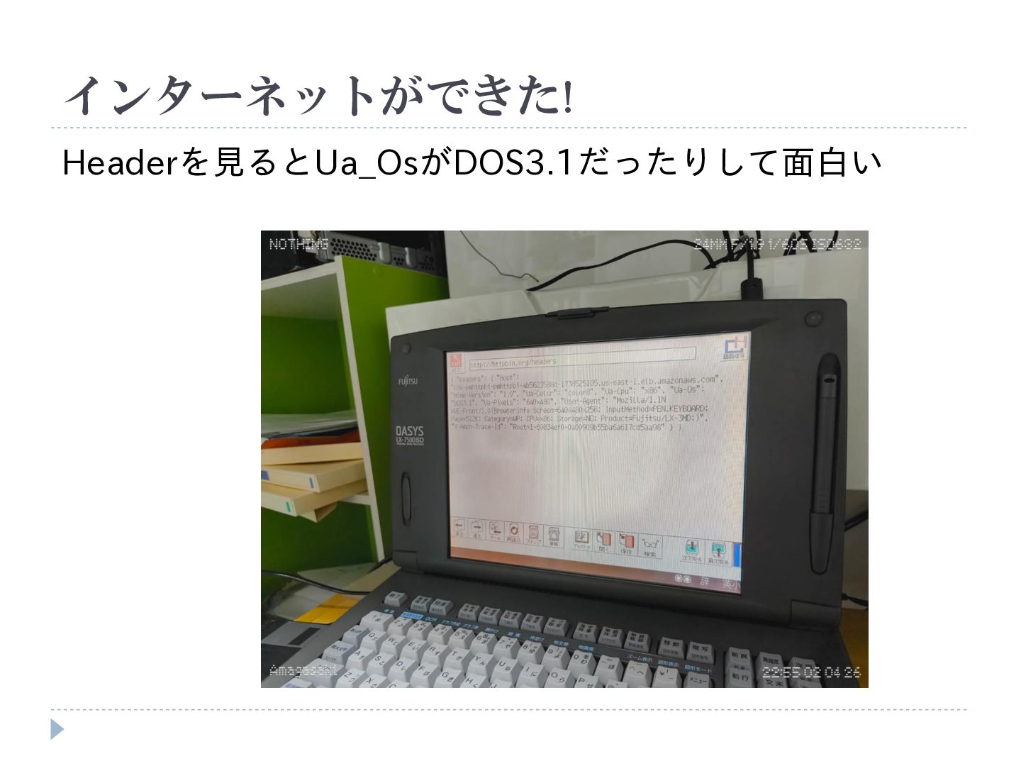 インターネットができた! Headerを見るとUa_OsがDOS3.1だったりして面白い