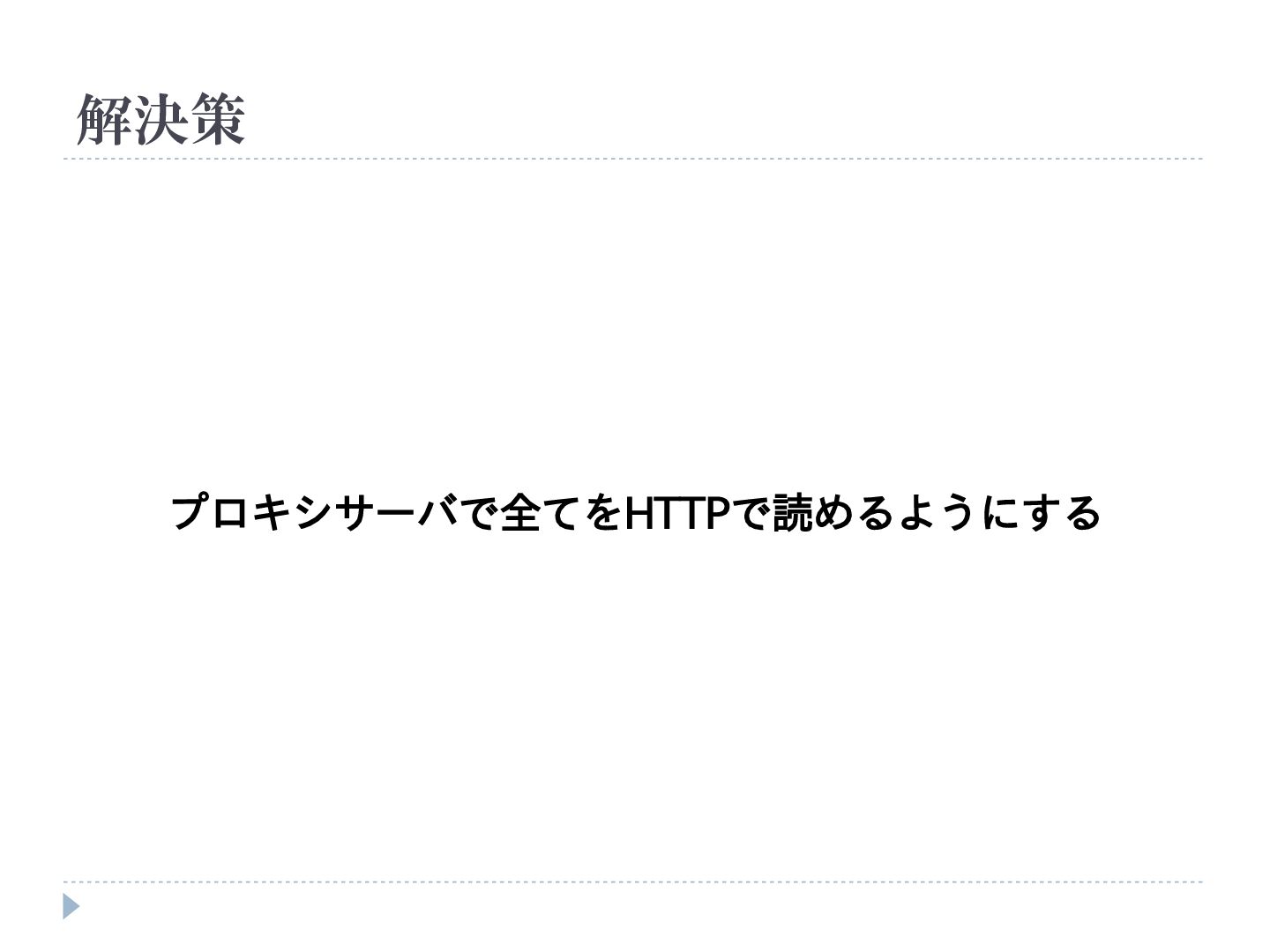 解決策 プロキシサーバで全てをHTTPで読めるようにする