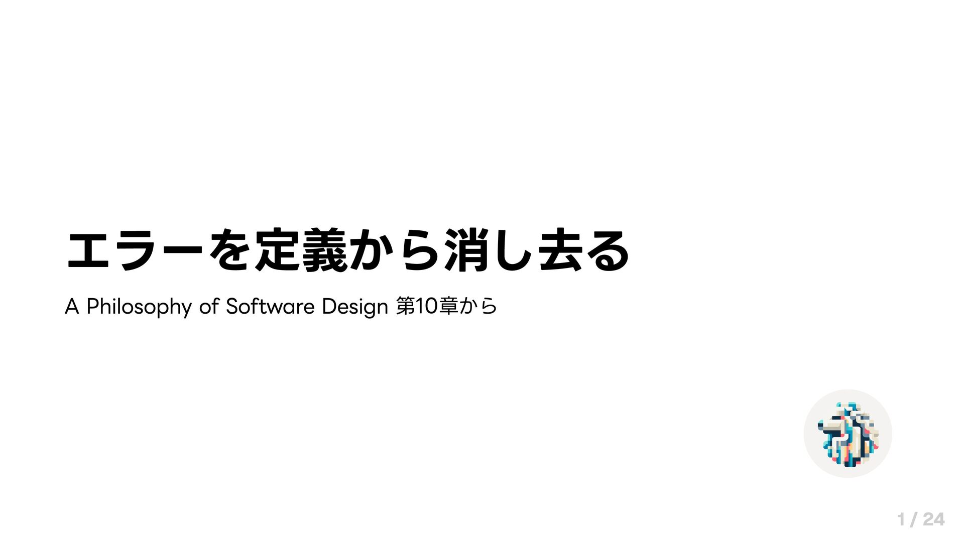 エラーを定義から消し去る A Philosophy of Software Design 第10章から 1 / 24