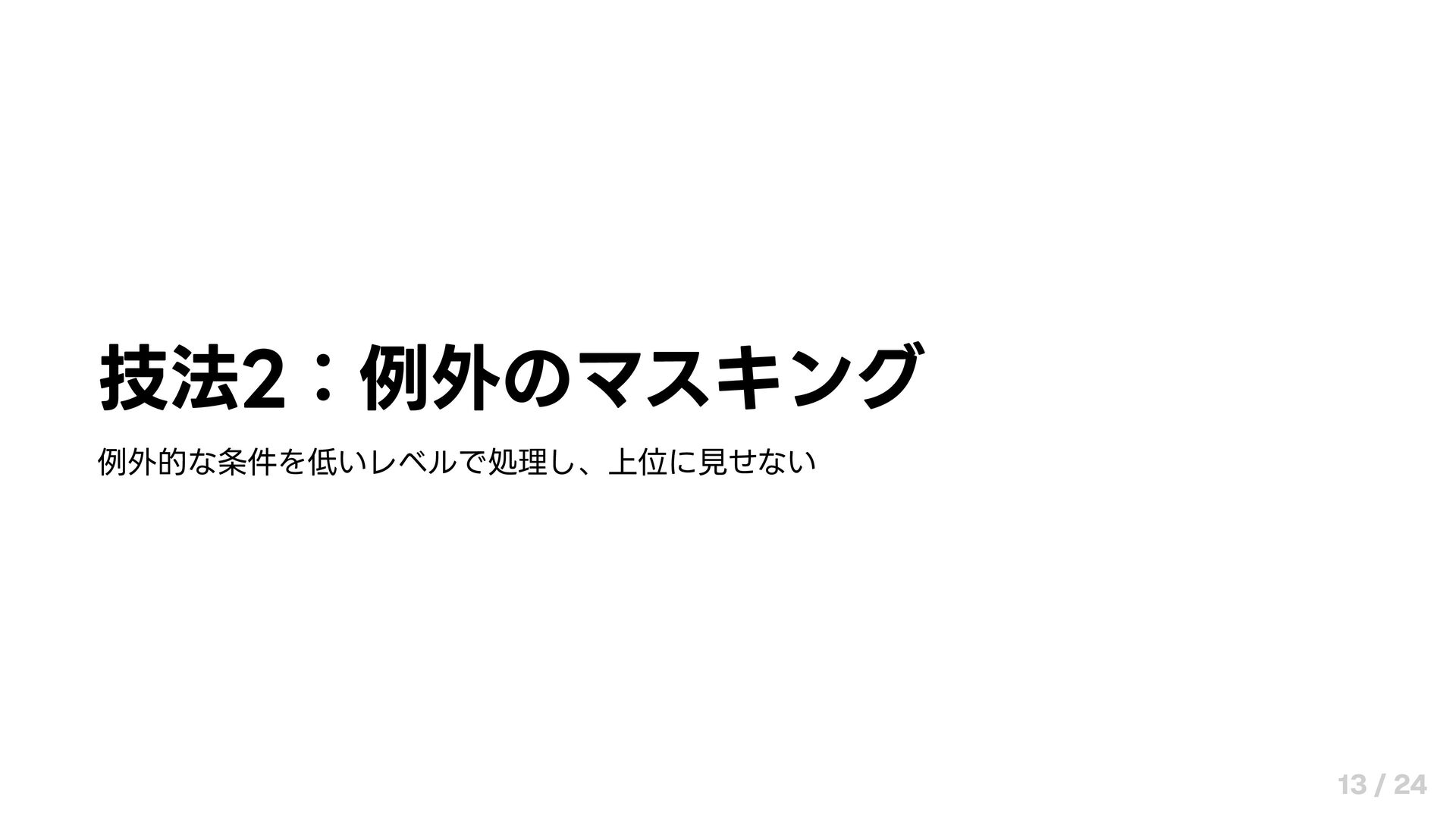技法2:例外のマスキング 例外的な条件を低いレベルで処理し、上位に見せない 13 / 24