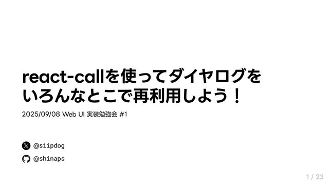 react-callを使ってダイヤログを いろんなとこで再利用しよう! 2025/09/08 Web UI 実装勉強会 #1 @siipdog @shinaps 1