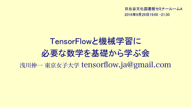 TensorFlowと機械学習に 必要な数学を基礎から学ぶ会 浅川伸一 東京女子大学