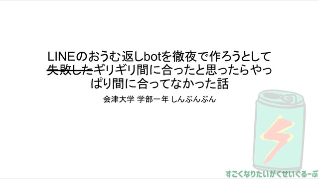 LINEのおうむ返しbotを徹夜で作ろうとして 失敗したギリギリ間に合ったと思ったらやっ ぱり間に合ってなかった話 会津大学 学部一年 しんぶんぶん