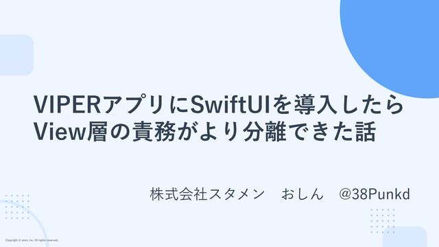 $PQZSJHIUTUNO JOD"MMSJHIUTSFTFSWFE 7*1&3ʹ4XJGU6*Λಋೖ͢Δ্Ͱߟ͑ͨ͜ͱ 7JFXͷϥΠϑαΠΫϧͱ 7JFX͕Πϯελϯεੜ͞Εͨޙʹը໘ͱͯ͠ΘΕ ͦͷޙΠϯελϯεഁغ͞ΕΔ·ͰͷҰ࿈ͷྲྀΕ ͦͦ