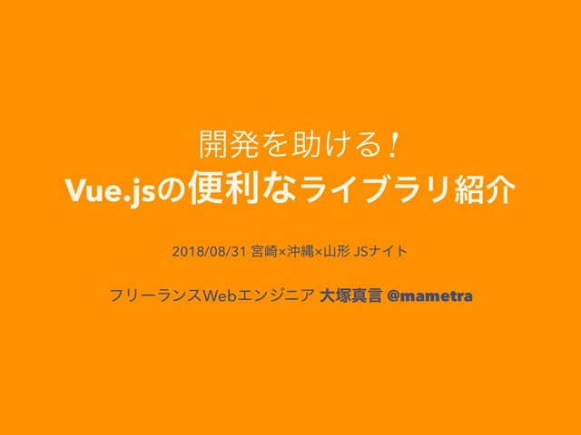։ൃΛॿ͚Δ Vue.jsͷศརͳϥΠϒϥϦհ 2018/08/31 ٶ࡚×ԭೄ×ࢁܗ JSφΠτ ʂ ϑϦʔϥϯεWebΤϯδχΞ େ௩ਅݴ @mametra