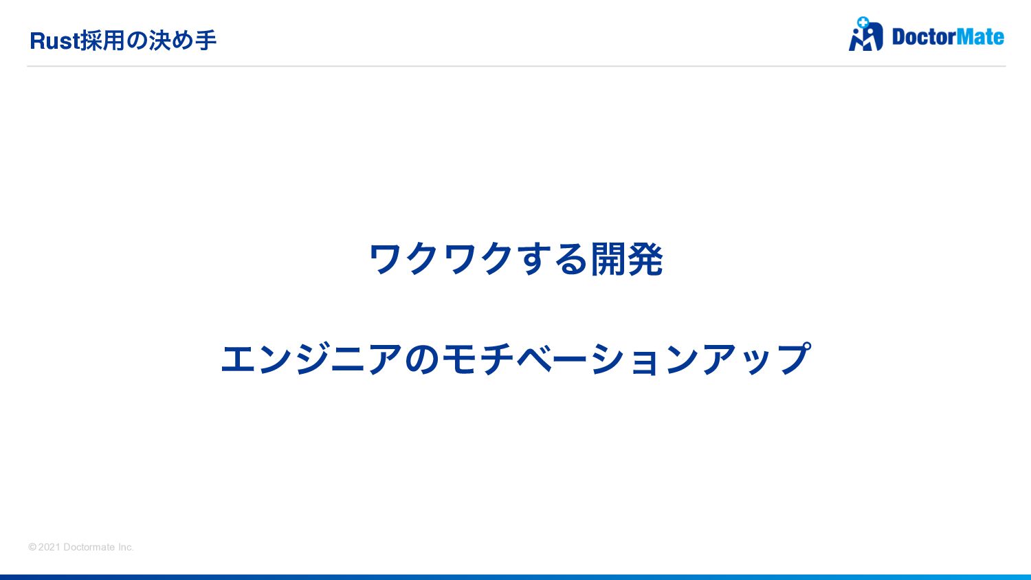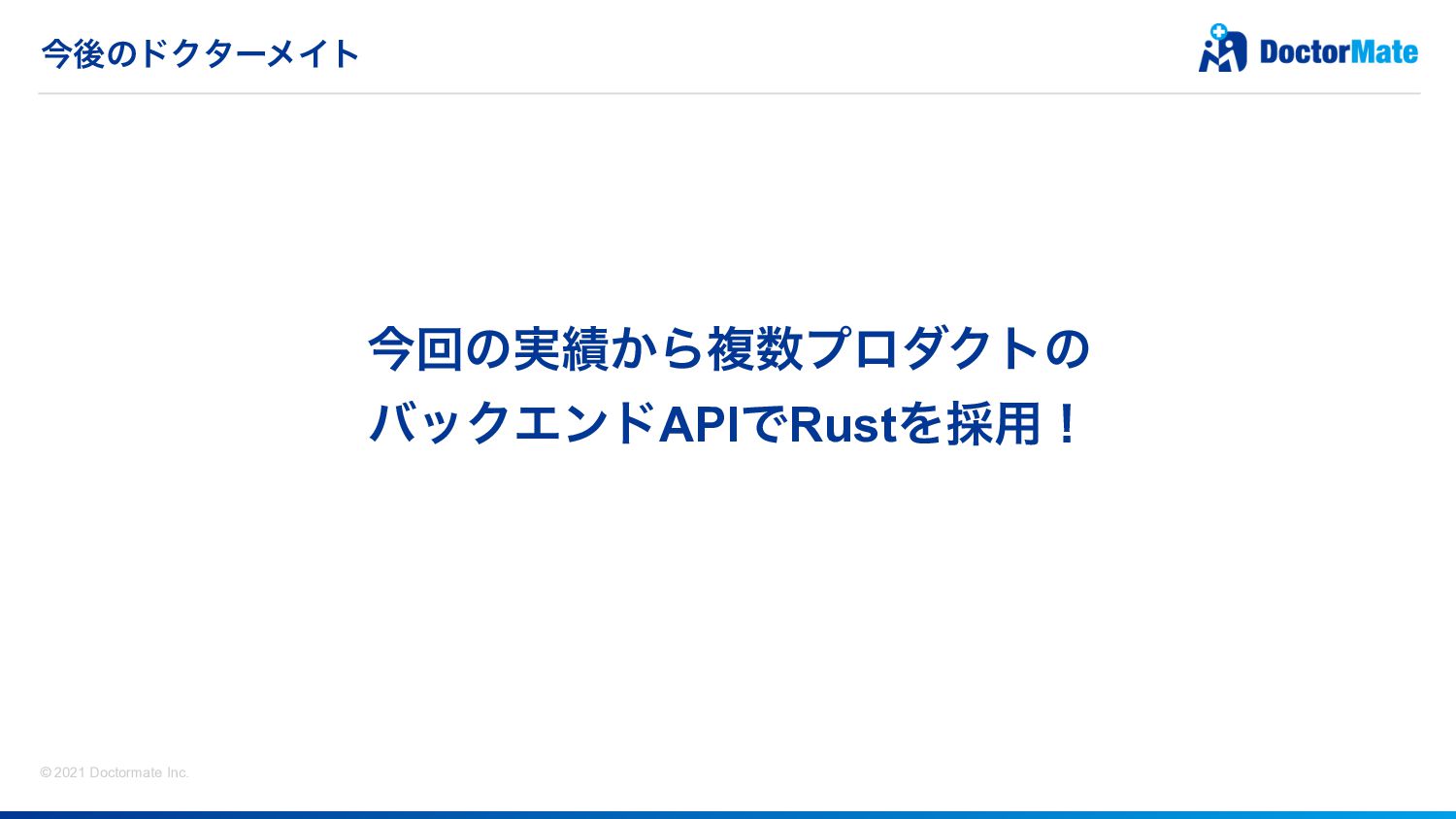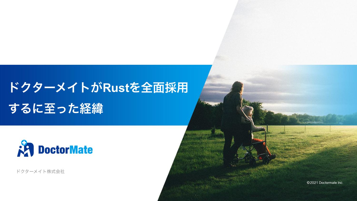© 2021 Doctormate Inc. υΫλʔϝΠτגࣜձࣾ υΫλʔϝΠτ͕RustΛશ໘࠾༻ ͢ΔʹࢸͬͨܦҢ
