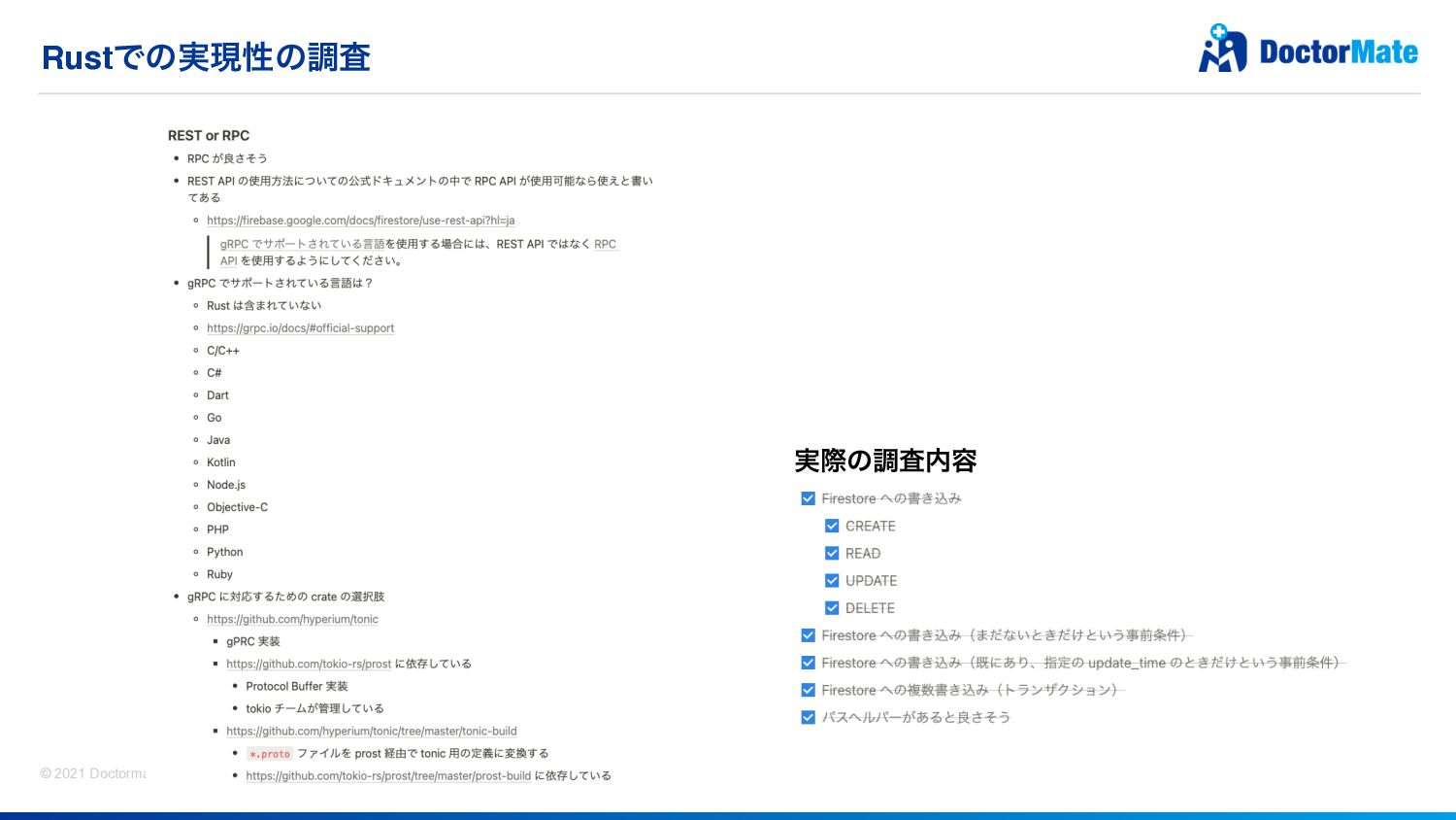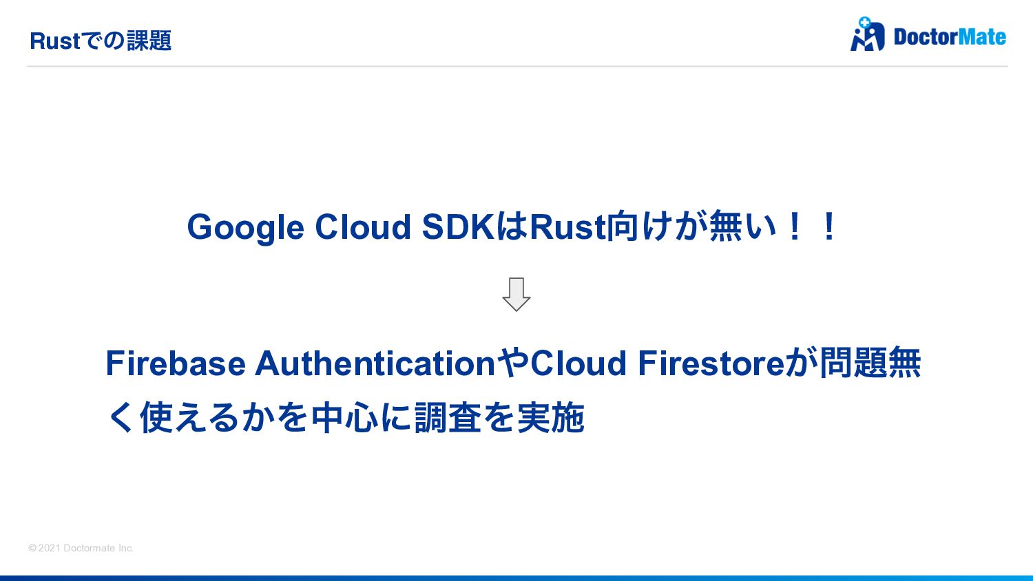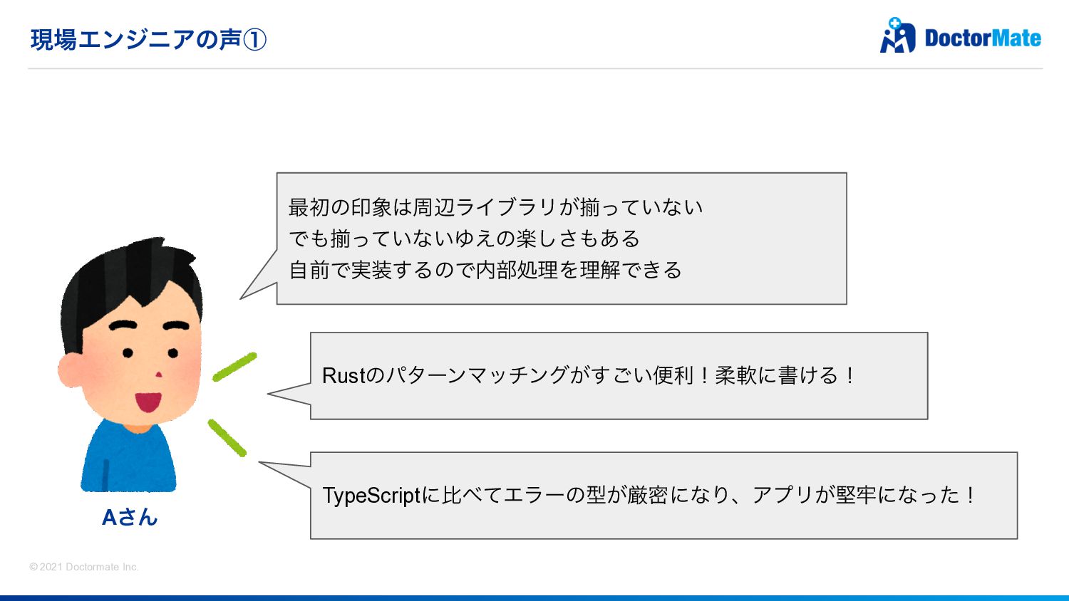 © 2021 Doctormate Inc. υΫλʔϝΠτגࣜձࣾ υΫλʔϝΠτ͕RustΛશ໘࠾༻ ͢ΔʹࢸͬͨܦҢ