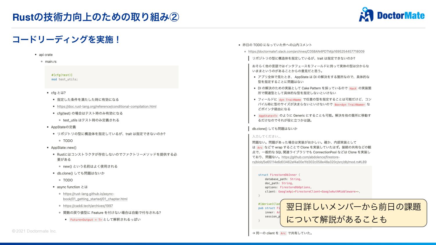 © Doctormate Inc. Rustͷٕज़ྗ্ͷͨΊͷऔΓΈᶄ © 2021 Doctormate Inc. ίʔυϦʔσΟϯάΛ࣮ࢪʂ ཌৄ͍͠ϝϯόʔ͔Βલͷ՝