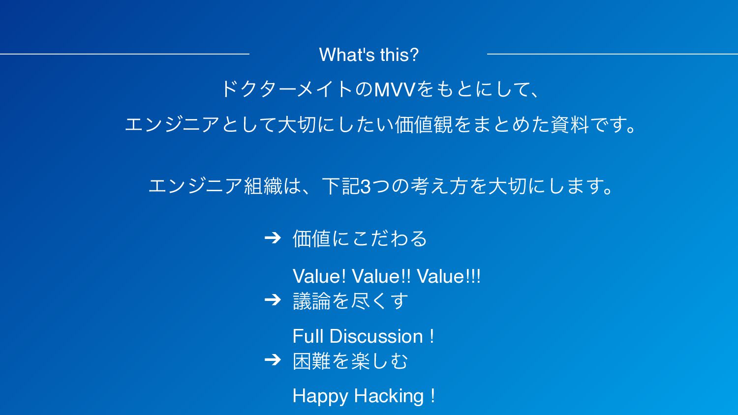 What's this? υΫλʔϝΠτͷMVVΛͱʹͯ͠ɺ ΤϯδχΞͱͯ͠େʹ͍ͨ͠Ձ؍Λ·ͱΊͨࢿྉͰ͢ɻ ΤϯδχΞ৫ɺԼه3ͭͷߟ͑ํΛେʹ͠·͢ɻ ➔ Ձʹͩ͜ΘΔ Value! Value!! Value!!!