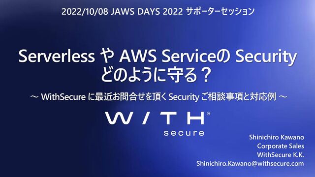 2022.10.08 JAWS DAYS 2022, WithSecure Supporter Session AWS Security for Beginner and Cyber Security Sauna