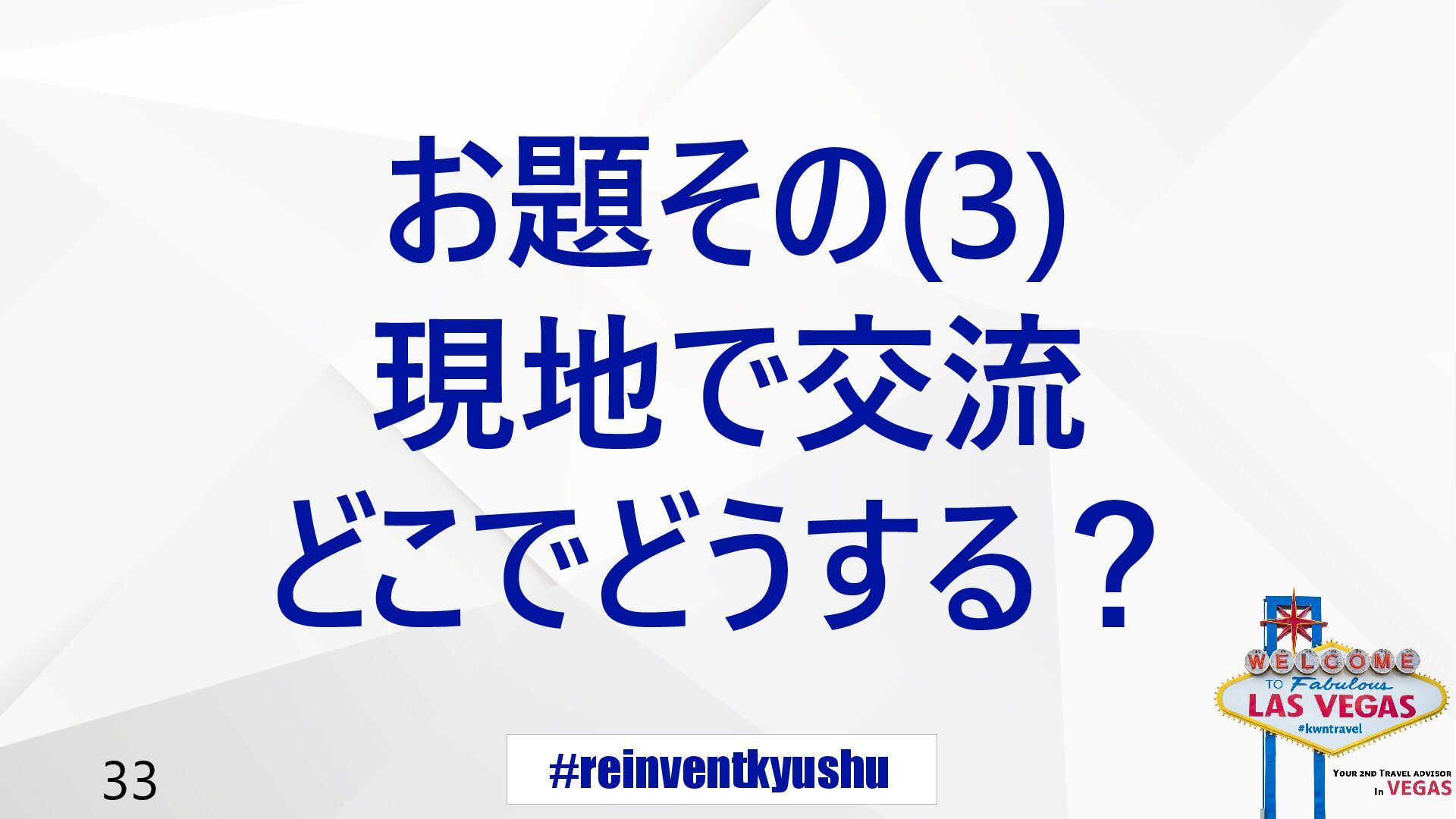 #reinventkyushu 33 お題その(3) 現地で交流 どこでどうする?