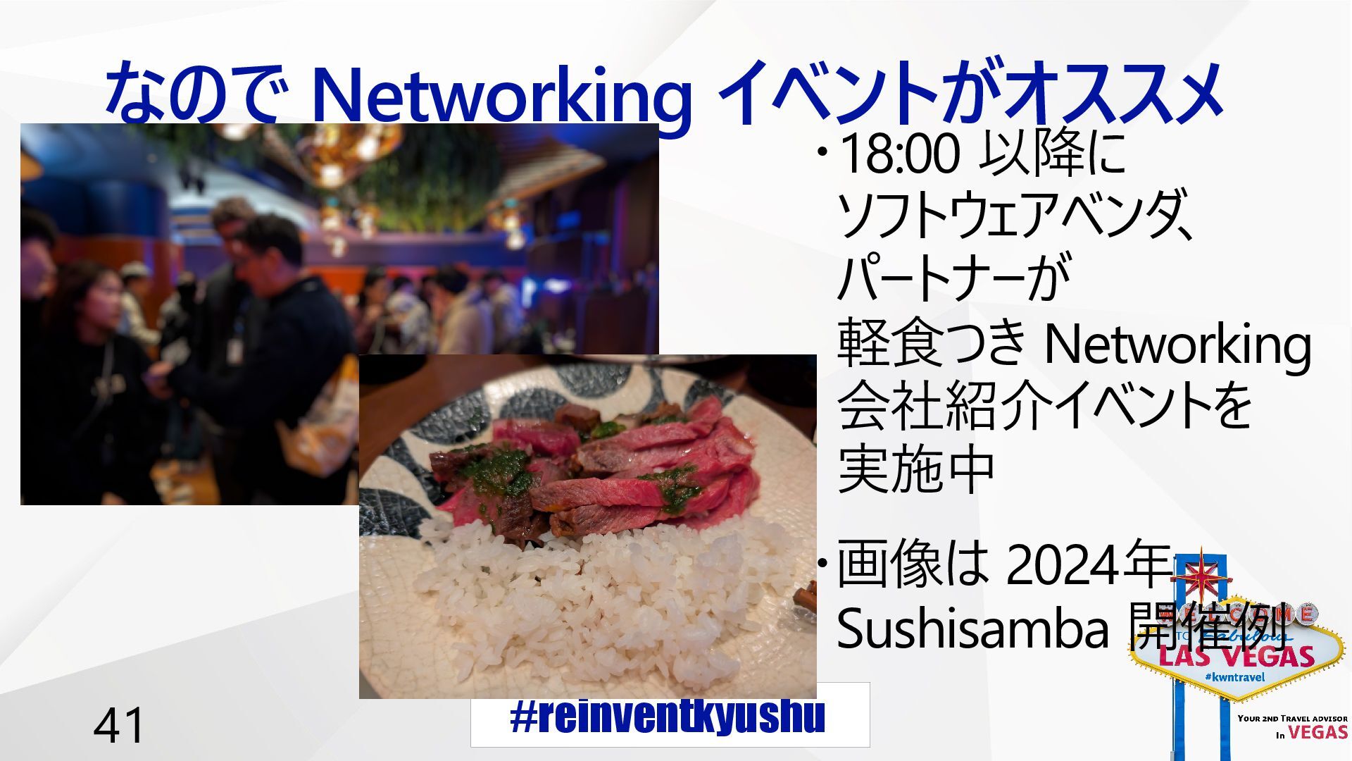 #reinventkyushu 41 なので Networking イベントがオススメ ・18:00 以降に ソフトウェアベンダ 、 パートナーが