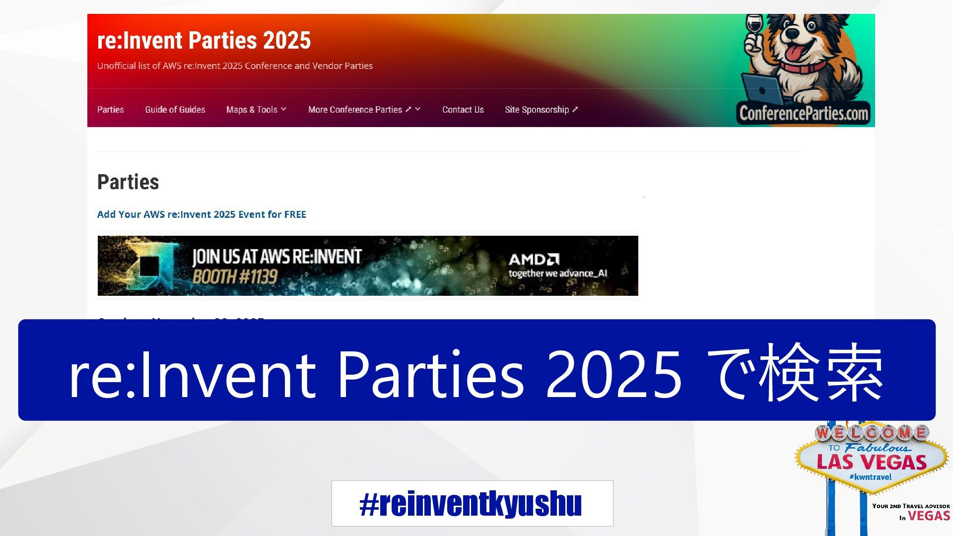 #reinventkyushu https://conferenceparties.com/reinvent2025/ re:Invent Parties 2025 で検索