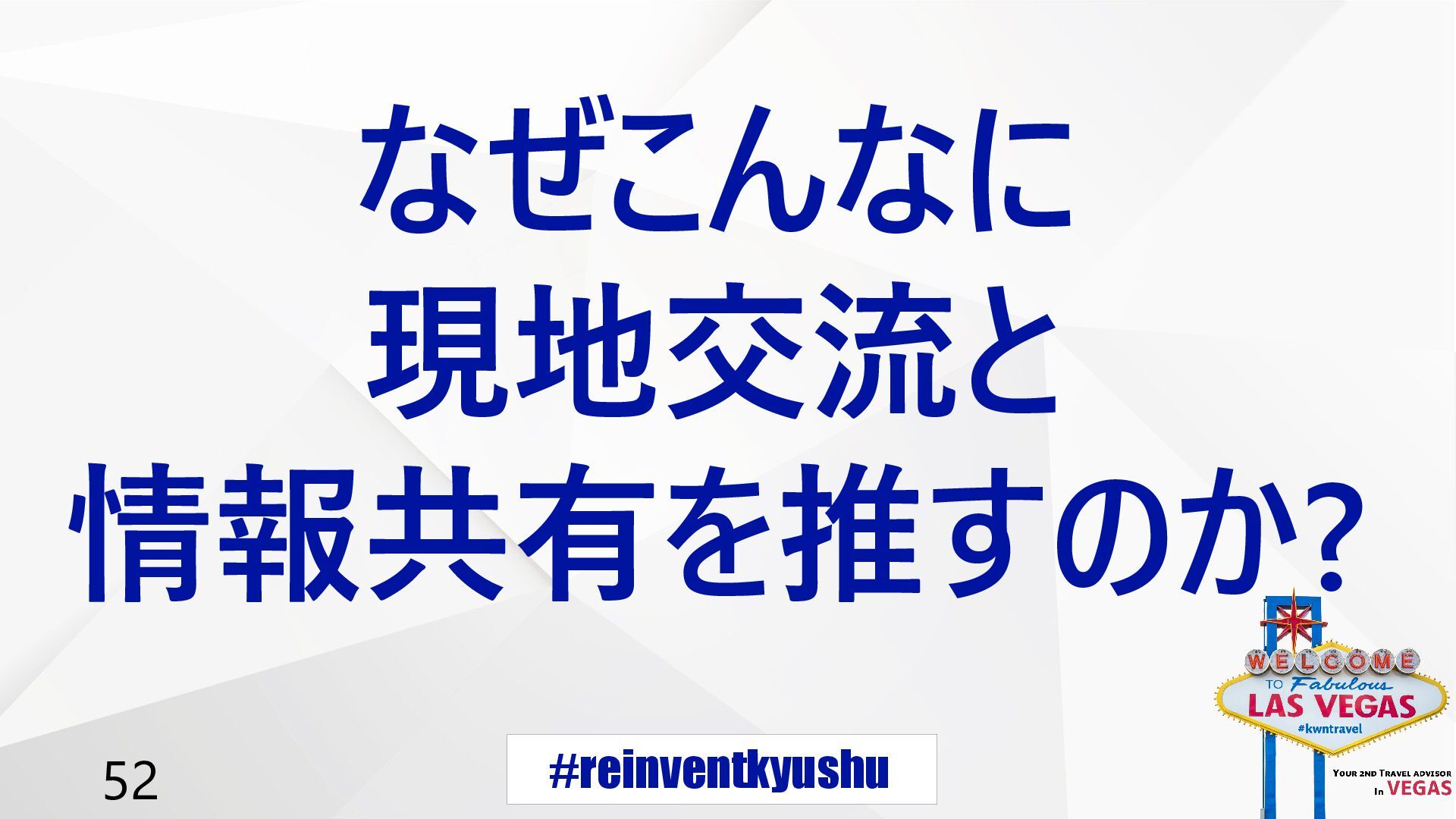 #reinventkyushu 52 なぜこんなに 現地交流と 情報共有を推すのか?