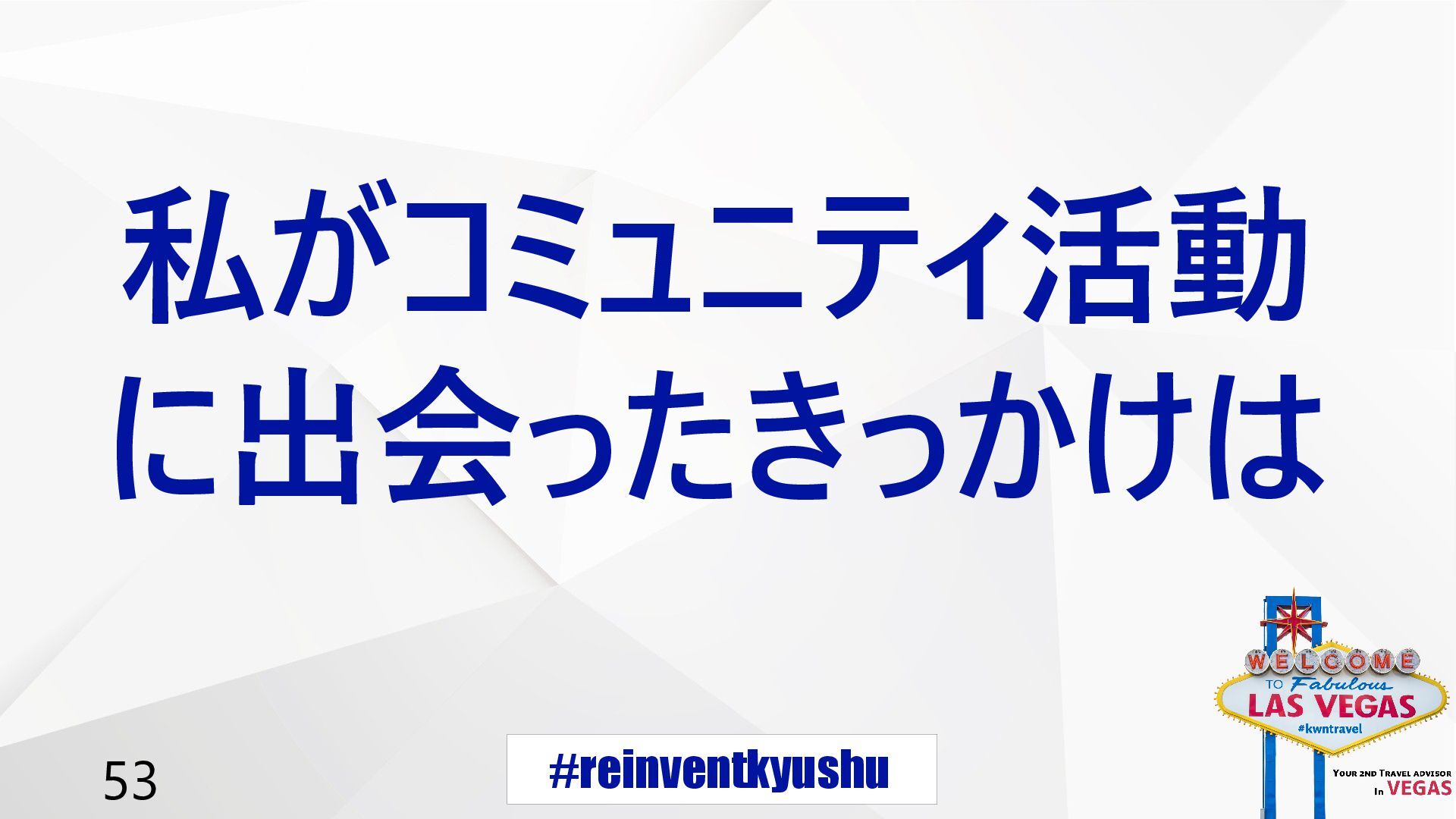 #reinventkyushu 53 私がコミュニティ活動 に出会ったきっかけは