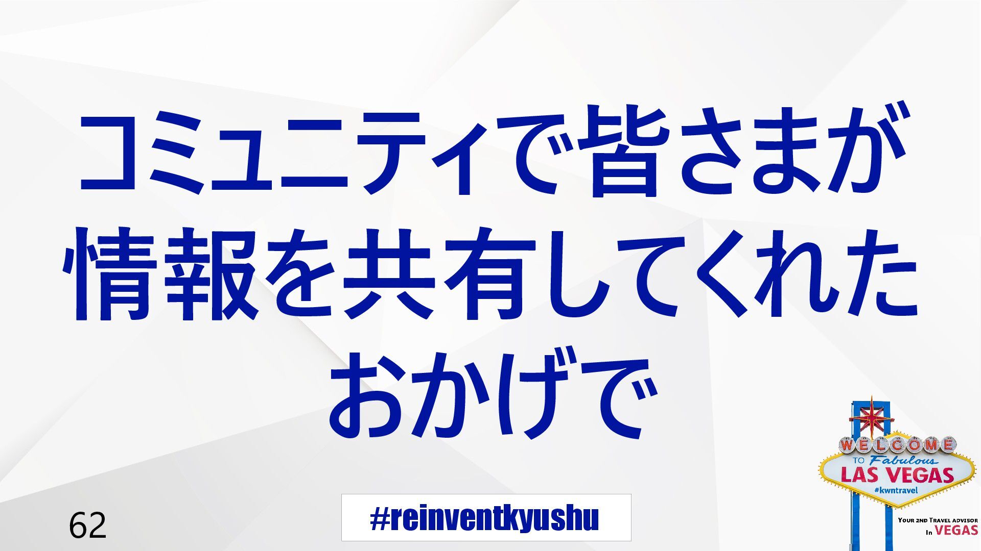 #reinventkyushu 62 コミュニティで皆さまが 情報を共有してくれた おかげで