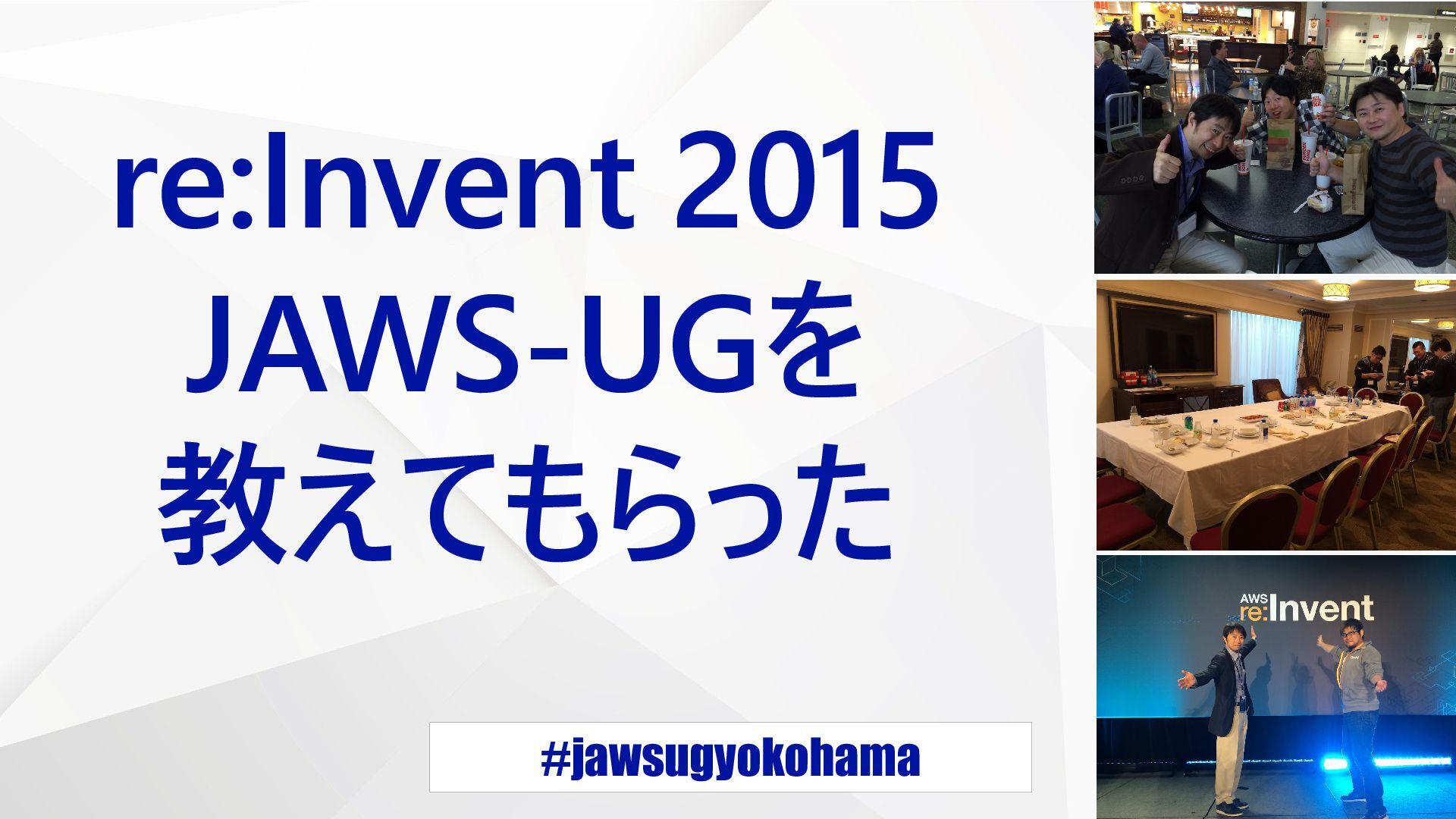 #jawsugyokohama re:Invent 2015 JAWS-UGを 教えてもらった