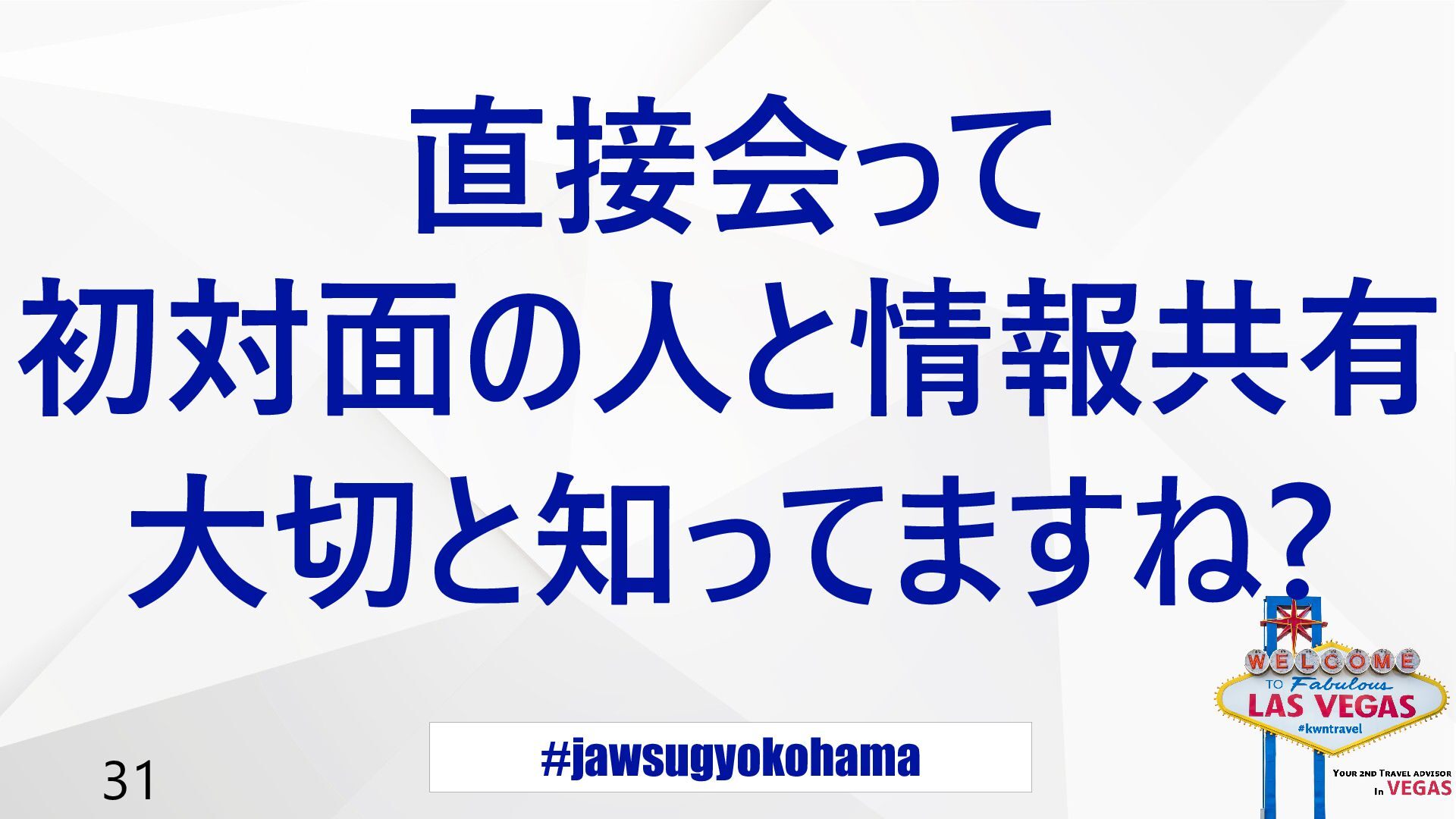 #jawsugyokohama 31 直接会って 初対面の人と情報共有 大切と知ってますね?