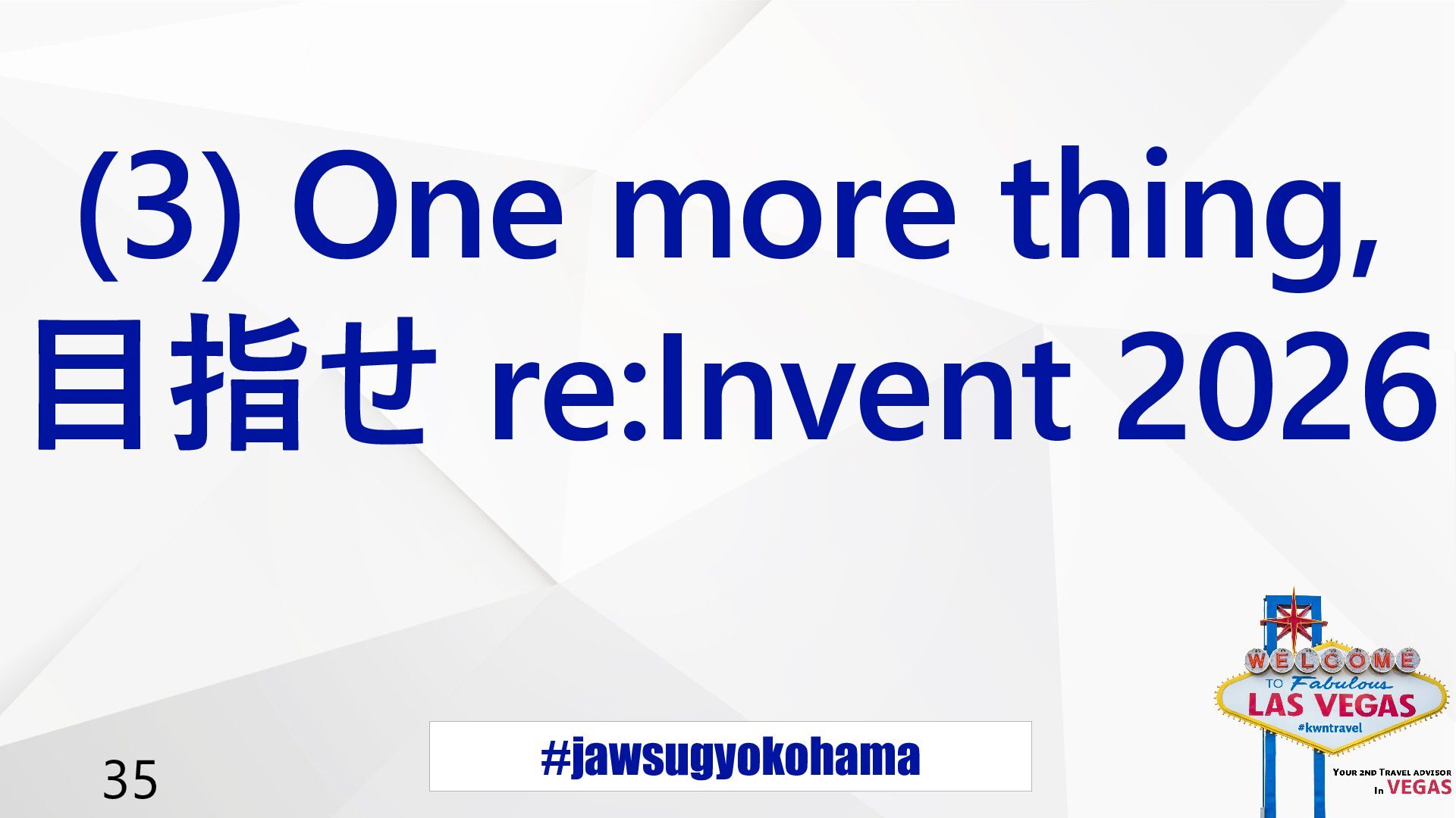 #jawsugyokohama 36 (3) One more thing, 目指せ re:Invent 2026