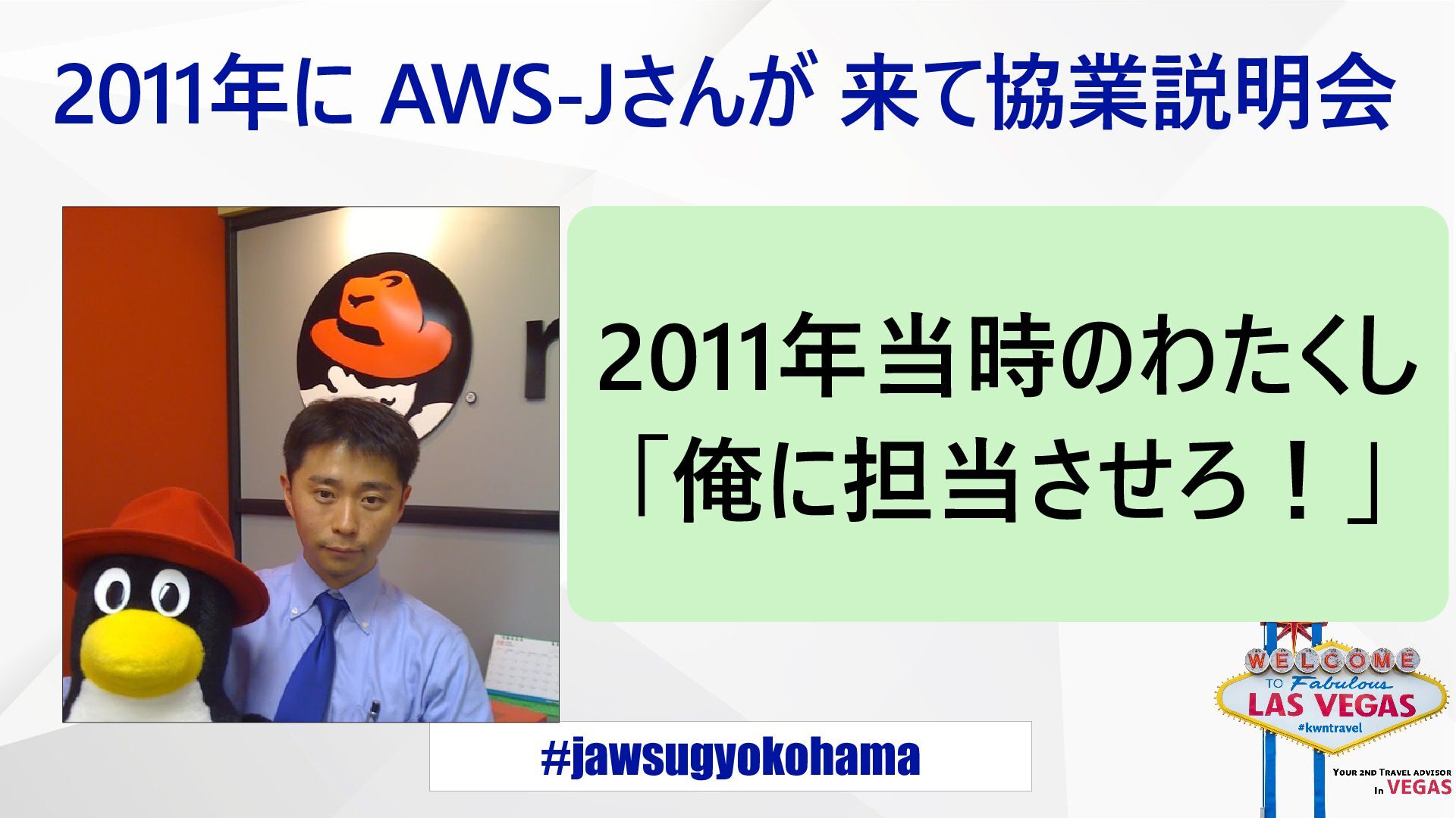 #jawsugyokohama 2011年に ADS-Jさんが 来て協業説明会 2011年当時のわたくし 「俺に担当させろ!」