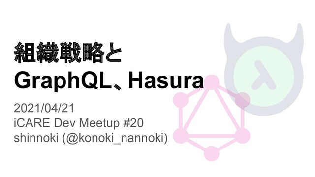 組織戦略と GraphQL、Hasura 2021/04/21 iCARE Dev Meetup #20 shinnoki (@konoki_nannoki)