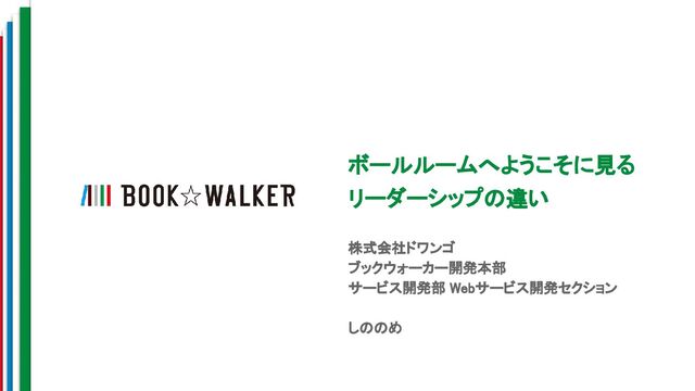株式会社ドワンゴ ブックウォーカー開発本部 サービス開発部 Webサービス開発セクション しののめ ボールルームへようこそに見る