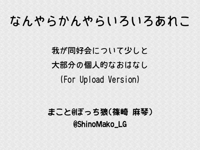 なんやらかんやらいろいろあれこ 我が同好会について少しと 大部分の個人的なおはなし (For Upload Version) まこと@ぼっち狼(篠崎 麻琴) @ShinoMako_LG