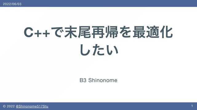 C++ で末尾再帰を最適化 したい B3 Shinonome 2022/06/03 © 2022 @Shinonome517Stu 1