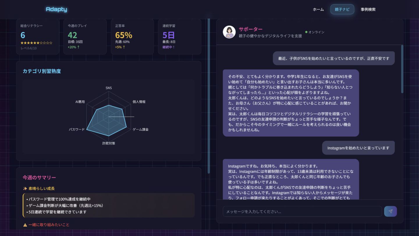 Adapty AI Agentsと親の共同体制で⼦供のネットリテラシーを育成 Shino Yamada