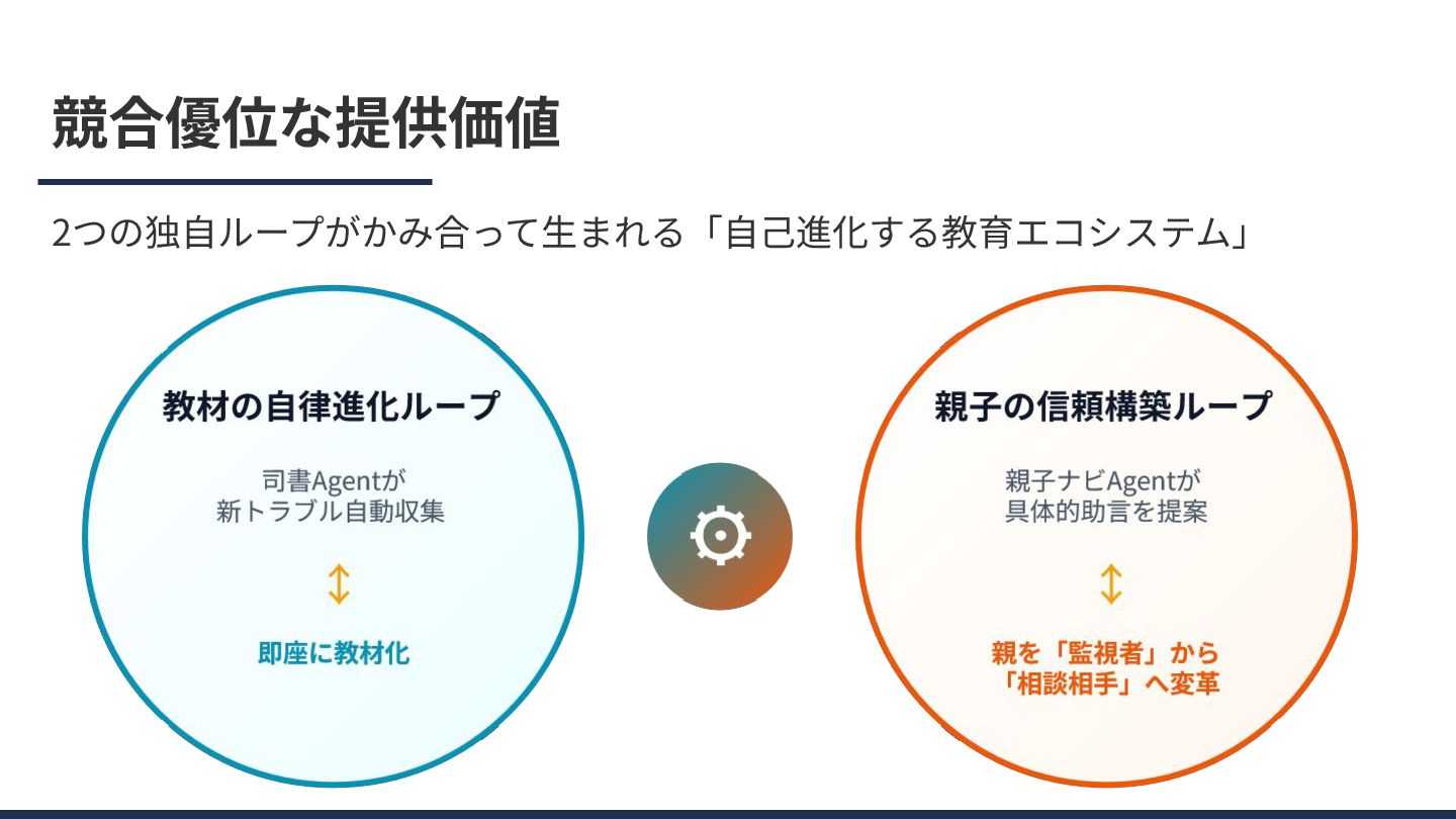 競合優位な提供価値 2つの独⾃ループがかみ合って⽣まれる「⾃⼰進化する教育エコシステム」