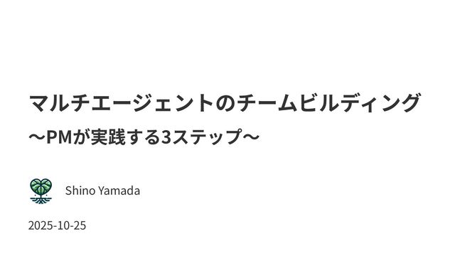 マルチエージェントのチームビルディング 2025-10-25 Shino Yamada 〜PMが実践する3ステップ〜