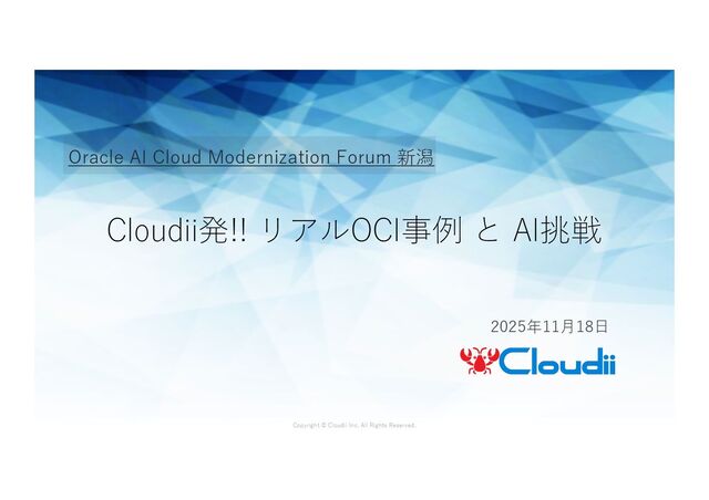 Cloudii発!! リアルOCI事例 と AI挑戦 Copyright © Cloudii Inc. All Rights