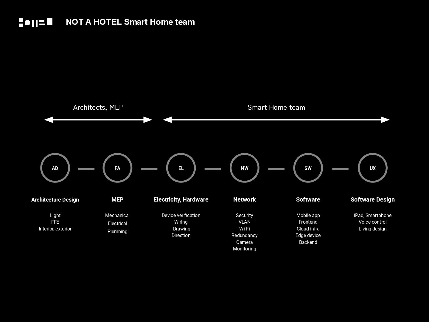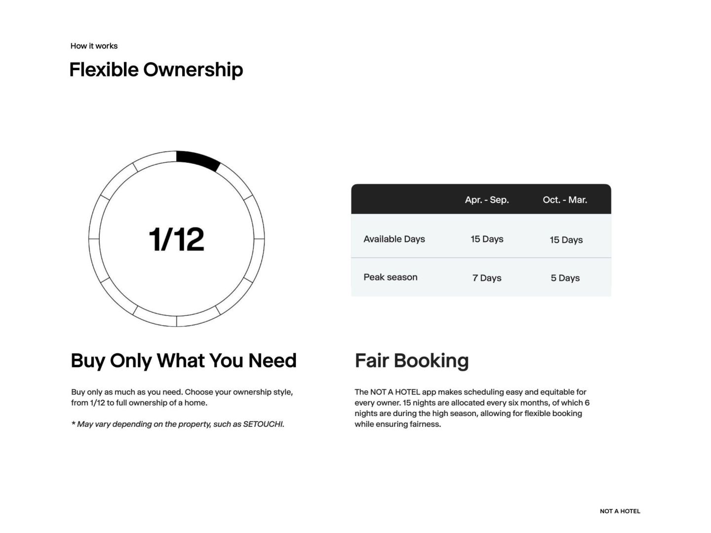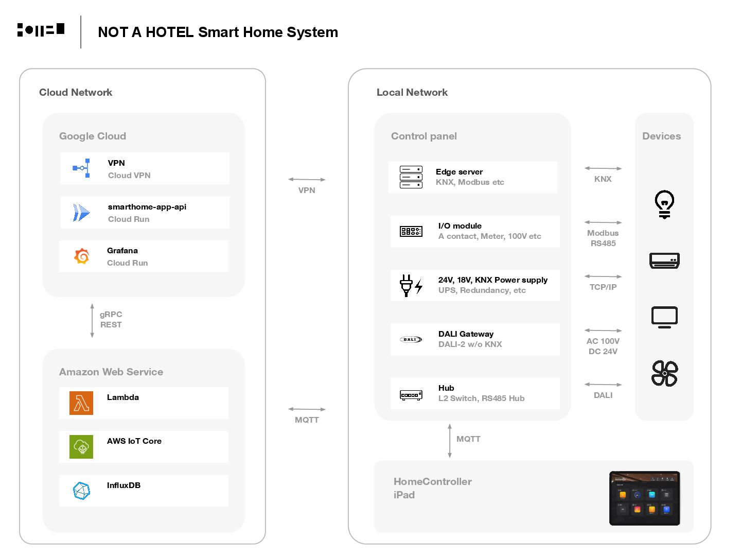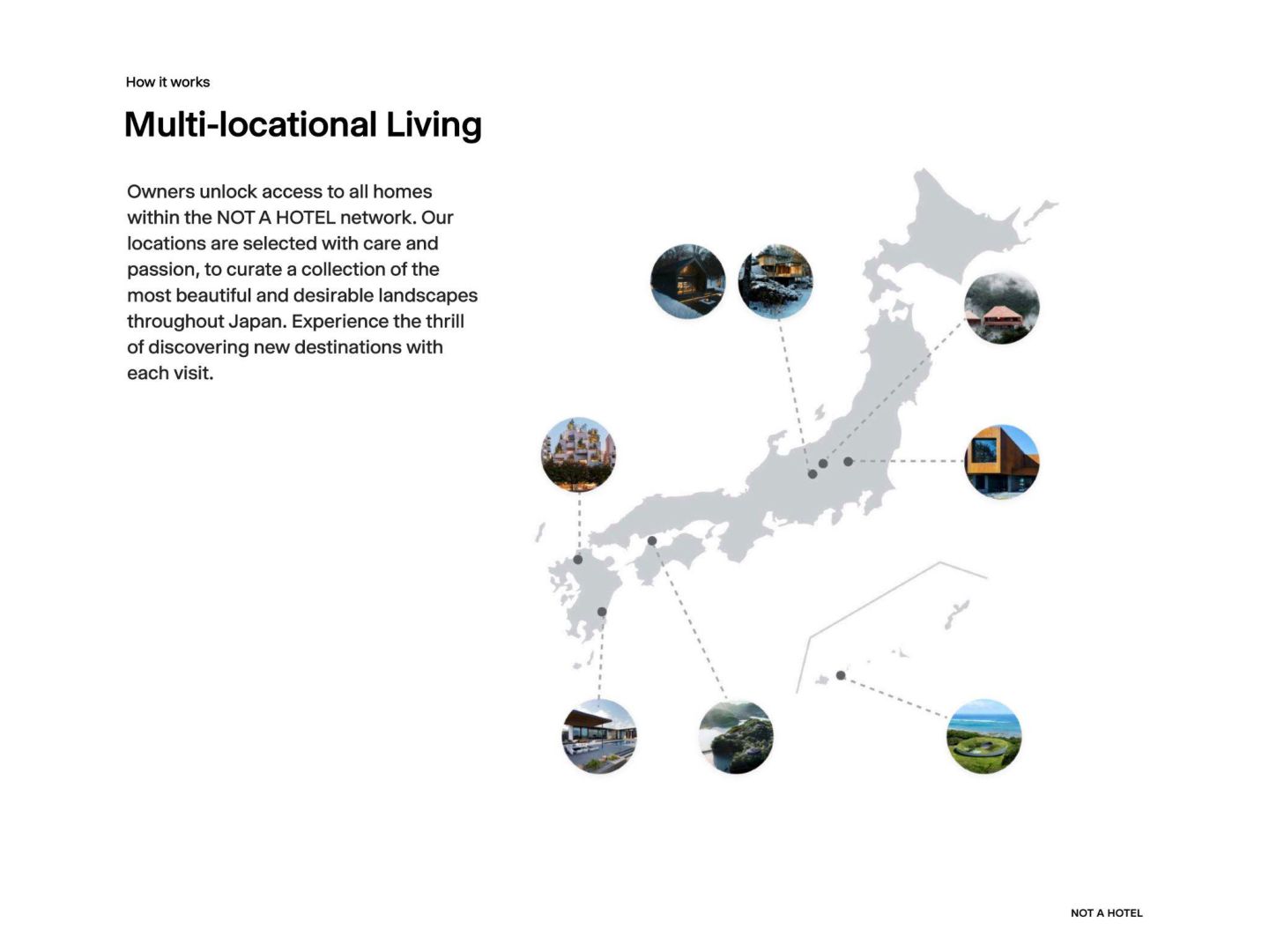 facilities—including locks, air conditioning, floor heating, lighting, baths, saunas, curtains, and blinds—are connected to the NOT A HOTEL Smart Home system. Physical switches have been completely removed from the houses, and every feature can be controlled via an iPad or smartphone. No matter which house guests stay in, they can operate everything through the same user interface, ensuring a seamless and intuitive experience. NOT A HOTEL Smart Home One UI everywhere