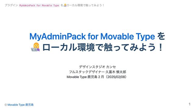 慎太郎 Movable Type 鹿児島 2 月(2025/02/08) プラグイン MyAdminPack for Movable Type を ローカル環境で触ってみよう! © Movable Type 鹿児島 1
