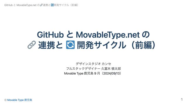 git clone してください 3. 【問題 3】 Movable Type.net からテーマをエクスポートしてください 4. 【問題 4】 VS Code を使ってコミットしてください。 5. 【問題 5】 Movable Type.net で GitHub連携 をしてください。 6. 【問題 6】コピーライトのタグを <p> から <div> へ変更してください を(行けるとこまで)したいと思います。 GitHub と MovableType.net の 連携と 開発サイクル(前編) © Movable Type 鹿児島 7