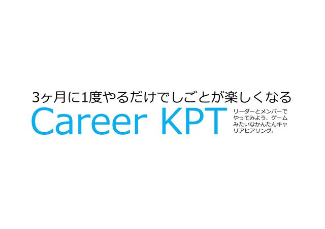 Career KPT 3ヶ月に1度やるだけでしごとが楽しくなる リーダーとメンバーで やってみよう、ゲーム みたいなかんたんキャ リアヒアリング。