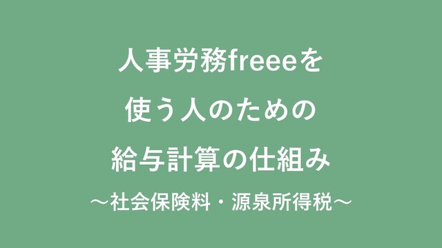 人事労務freeeを 使う人のための 給与計算の仕組み ~社会保険料・源泉所得税~