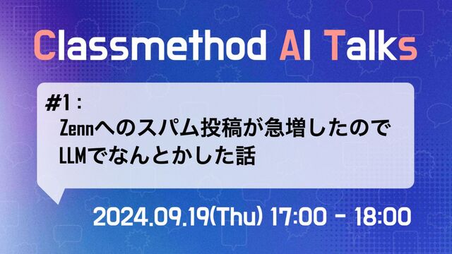 ・CATs #1 :Zennへのスパム投稿が急増したのでLLMでなんとかした話 - Classmethod AI Talks(CATs) | Doorkeeper