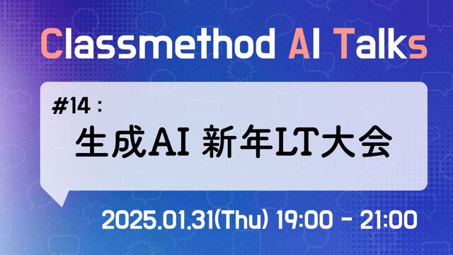 クラスメソッド発の生成AIコミュニティ、Classmethod AI Talks(CATs)で2025年01月31日(木)に開催した第14回イベントの司会進行スライドです。