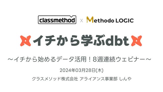 クラスメソッド株式会社と株式会社メソドロジックによる共催イベント『イチから始めるデータ活用!8週連続ウェビナー』の第6回『イチから学ぶdbt』の登壇に用いた発表資料です。