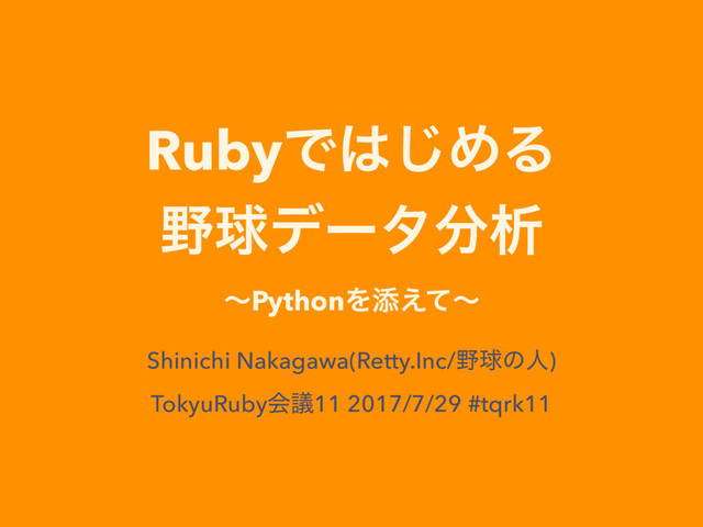 RubyͰ͡ΊΔ ٿσʔλੳ Shinichi Nakagawa(Retty.Inc/ٿͷਓ) TokyuRubyձٞ11 2017/7/29 #tqrk11 ʙPythonΛఴ͑ͯʙ