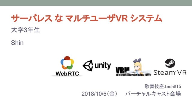 大学3年生 Shin 歌舞伎座.tech#15 2018/10/5(金) バーチャルキャスト会場 サーバレス な マルチユーザVR システム