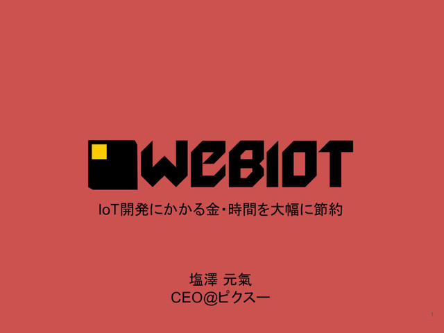 1 IoT開発にかかる金・時間を大幅に節約 塩澤 元氣 CEO@ピクスー