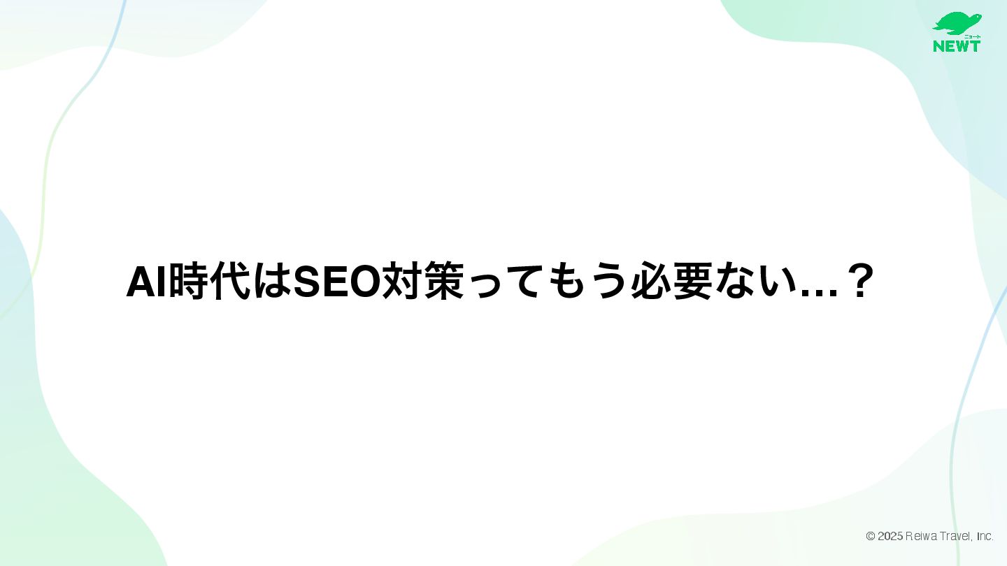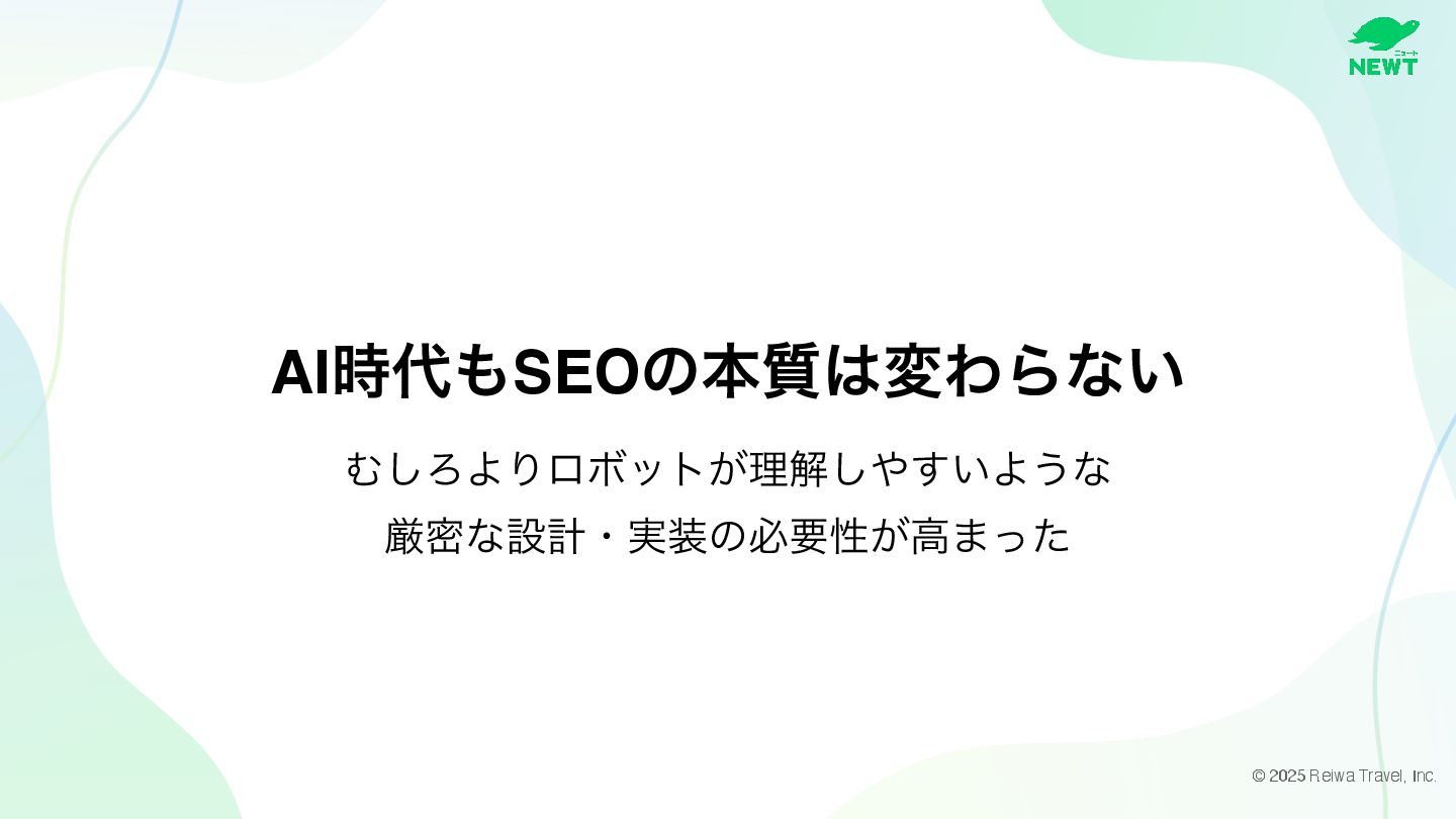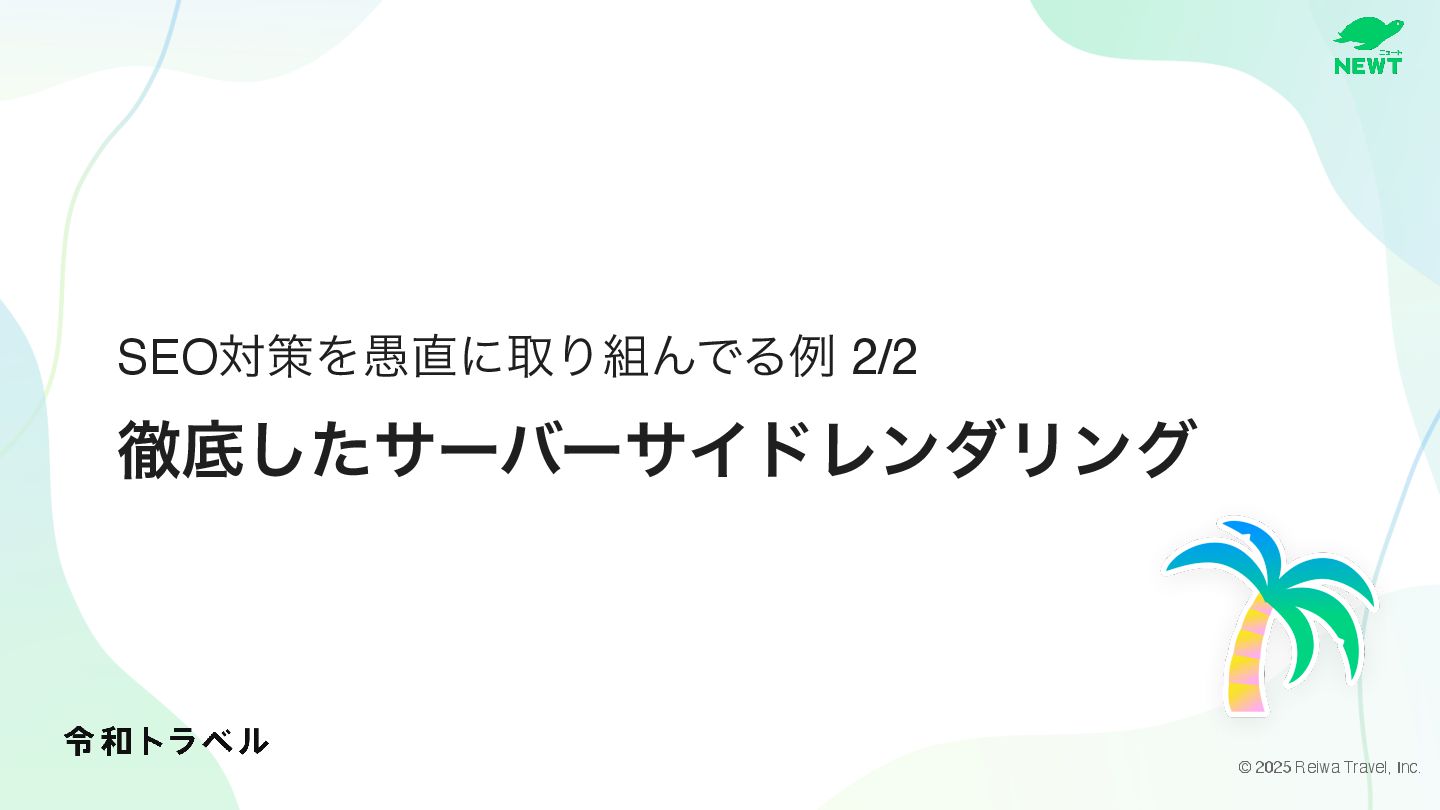 令和トラベルの具体的な取り組みとして「精緻なURL設計」と「徹底したサーバーサイドレンダリング」をご紹介します。AI時代においてもSEOの本質は変わっておらず、むしろ技術的に挑戦しがいのある領域になっています。