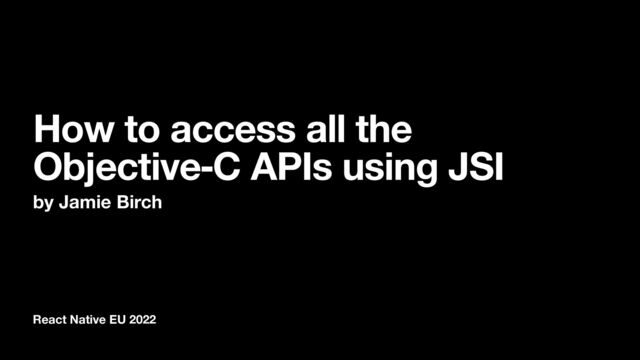 string!"); // createFromUtf8 also works. jsi::String::createFromUtf8(*rt, @"An NSString".UTF8String); • Number jsi::Value(123); // C number jsi::Value([NSNumber numberWithDouble:3.1415926].doubleValue); // NSNumber longhand jsi::Value((@3.1415926).doubleValue); // LLVM shorthand to instantiate an NSNumber • Boolean jsi::Value(TRUE); // Boolean (unsigned char) jsi::Value(YES); // Obj-C BOOL (signed char) // The following do not work: // true, false, @(YES), @(NO), kCFBooleanTrue, kCFBooleanFalse, 0, 1