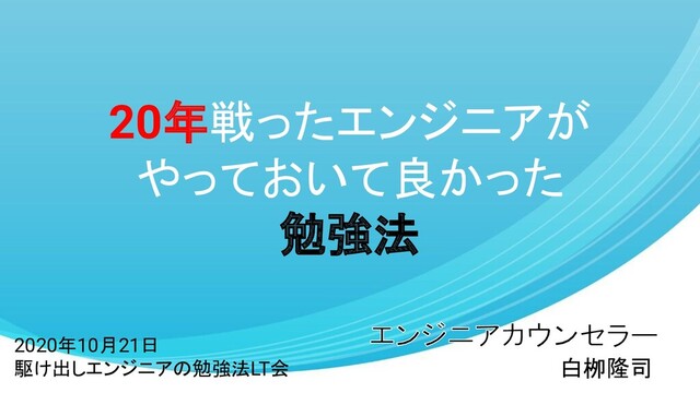 2020年10月21日 駆け出しエンジニアの勉強法LT会 で登壇したときの資料です。 https://rakus.connpass.com/event/189366/